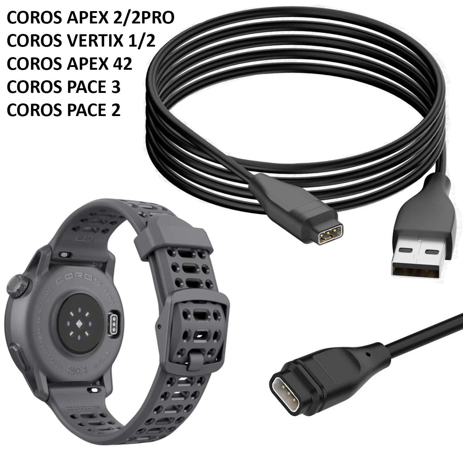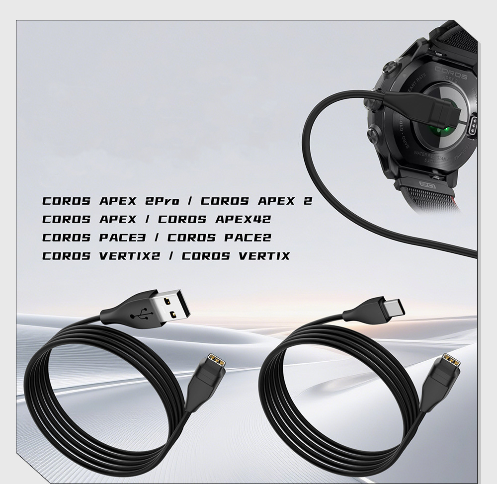 Mẫu tương thích: cáp sạc tương thích với đồng hồ thông minh Coros Pace 2 / Coros Pace 3 / Coros Apex 2,2 Pro / Coros APEX 42 / Coros Vertix 1,2s